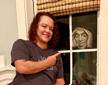 At home, spook friends and family or hang next to your front door to scare away unwanted solicitors!
